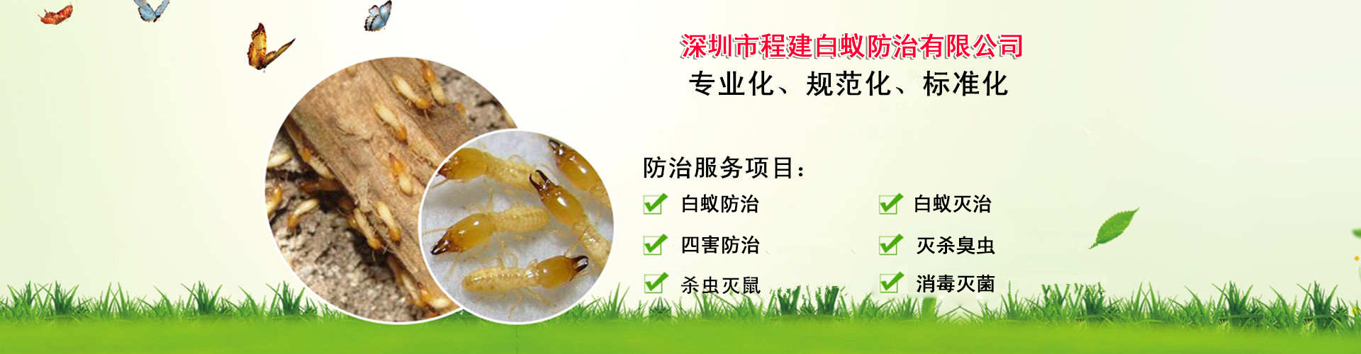 深圳市程建白蟻防治中心有限公司:致力于白蟻防治工程、深圳市白蟻防治公司、預防白蟻工程、建筑工程白蟻預防、白蟻滅治、殺白蟻、滅白蟻、治白蟻、除白蟻、防白蟻,白蟻消殺、預防白蟻、深圳市殺白蟻公司、有害生物防制:深圳市殺蟲公司、深圳消殺公司、深圳市消殺中心、除四害、白蟻如何根治、深圳市消毒公司、家里發(fā)現(xiàn)白蟻怎么辦、滅蟑螂、 工廠殺蟲、物業(yè)殺蟲、辦公室消殺、工業(yè)園殺蟲等、專注于為客戶民提供專業(yè)解決蟲害方案,通過技術團隊創(chuàng)新研發(fā)新技術和學習傳統(tǒng)技術相結合,針對客戶需求,為客戶量身打造更加全面的白蟻防治、白蟻滅治、深圳市殺蟲、深圳消殺、深圳市殺白蟻等有害生物防制施工措施。
